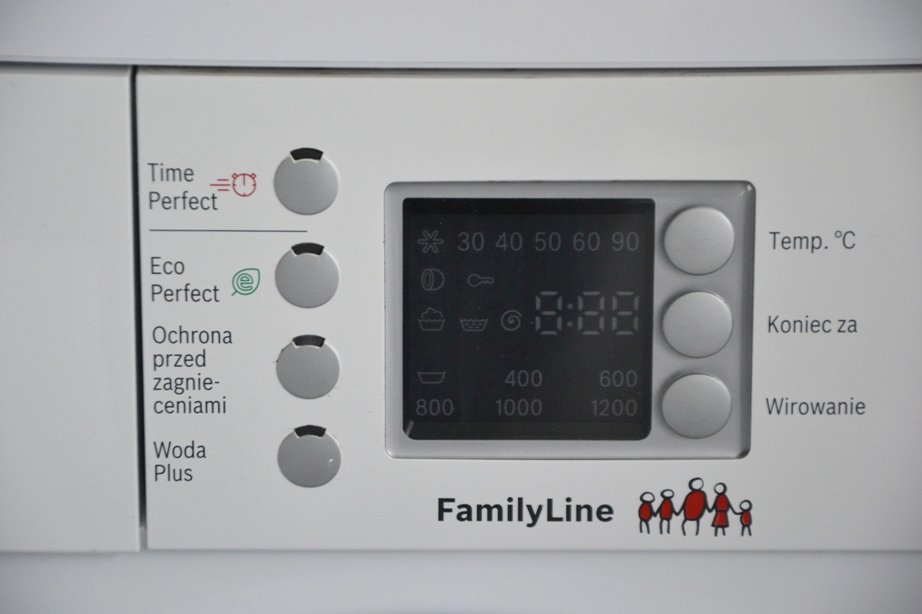Programy prania: Bawełna, Bawełna z praniem wstępnym, Syntetyki, Syntetyki z praniem wstępnym, Family Mix, Delikatne, Jedwab, Wełna, Pranie Ręczne, Family Jeans, Family Sport, Antyalergia, Koszule, Bluzy, Super krótki 15 minut,