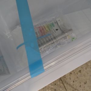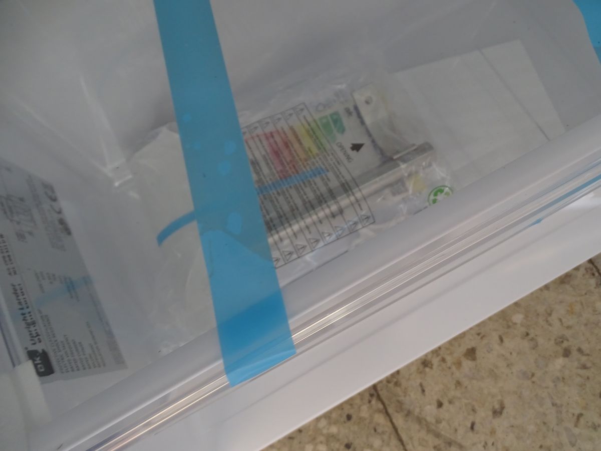 Chłodziarka nowa posiada wgniecenie z przodu zaznaczone różowym kółkiem na zdjęciu
